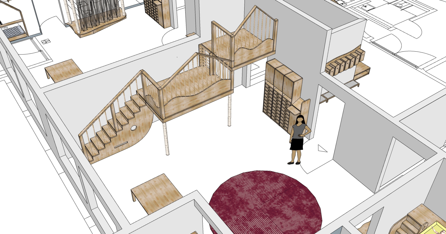 Hier sollte eine neue Einrichtung einer Kindertagsstätte nach ökologischen und gesunden Kriterien entworfen, konstruiert, gefertigt und montiert werden. Die Lösung wurde im 3D-Modell gemeinsam mit dem Nutzer in mehreren Zoom-Sitzungen entwickelt.
